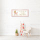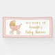 Bienvenue dans votre baby shower avec cette mignonne bannière de douche pour bébé avec une petite chandelle rose pastel et or rétro et le nom de la future mère dans un script élégant. Vous pouvez personnaliser le texte sur le chariot avec le nom ou le sexe du bébé ("C'est une fille !") ou laisser vide.
