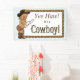 Bannière de baby shower ethnique cowboy avec adorable petit cowboy sur un mignon arrière - plan de corde bleue. Vous pouvez personnaliser cette jolie bannière de baby shower cowboy avec le texte de votre choix.