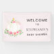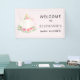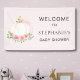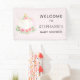 Décorez le baby shower de votre petite fille avec cette jolie bannière de bienvenue. Il est doté d'un citrouille d'aquarelle mignon et de fleurs sur un arrière - plan rose doux. Facile à personnaliser. Aquarelle originale © Michele Davies.