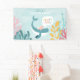 Jeter un baby shower pour les parents amateurs de baleines ? Célébrez avec ce joli signe de baleine et de baby shower infantile. Une baleine douce avec un bébé niché sur le dos nageant à travers l'océan et un ensemble coloré d'herbes marines et de coraux. Inclut le dicton "baladier au monde".