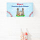 Bannière de baby shower de garçon sur le thème du baseball avec petit garçon et chiens mignons assis l'un à côté de l'autre.