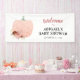 Cette bannière d'accueil baby shower d'automne présente une représentation graphique d'un citrouille accentué de parties scintillant pêche et rose or et de fleurs de couleur automne.