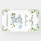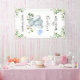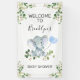 Banderole de bienvenue sur le thème de l'éléphant mignon, avec un éléphant d'aquarelle, ballon en forme de coeur bleu et quelques feuilles d'eucalyptus. Tout le texte est modifiable rendant ce modèle utile à diverses occasions.
