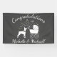 Le baby shower de chien Doberman pinscher est mignon pour un nouveau bébé avec le chariot vintage et la silhouette dobie.