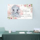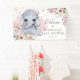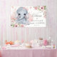 La bannière de baby shower présente un adorable éléphant aquarelle peint à la main et orné de roses. Personnalisez avec la mère pour être le nom et la date de la douche ou changez le nom du bébé seulement pour que la mère puisse pendre dans la chambre du bébé après la douche.