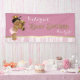 Banderole de baby shower princesse avec adorable princesse ethnique portant un pantalon rose et une jolie couronne d'or tenant un ours en peluche sur un bel arrière - plan rose et or. Cette bannière de baby shower rose et or est facilement customisée avec votre texte dans le style de police, la couleur et le libellé de votre choix. Vous pouvez également modifier la couleur de l'arrière - plan.