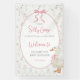 Bienvenue aux hôtes au charme vintage doux ! Ce panneau baby shower présente une adorable oie dans un arc rose entouré de fleurs sauvages d'aquarelle douce. Avec son design fantaisiste et féminin, c’est la première impression parfaite pour une fête inspirée de la campagne.
