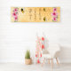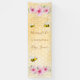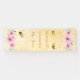 Élégante, amusante, bannière de baby shower d'été. Jaune, arrière - plan blanc avec un motif de nid d'abeille. Décoré de fleurs tropicales roses, d'hibiscus et d'abeilles jolies. Avec le texte : Mommy to Bee et le nom de la future maman. Personnalisez et ajoutez un nom et une date. Peut être utilisé à la fois comme bannière de bienvenue et comme décoration murale de fête. Cette bannière est également disponible dans notre magasin avec des fleurs d'hibiscus couleur crème ou avec des tournesols.