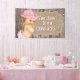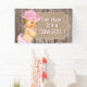 Bannière de baby shower rustique cowgirl avec adorable cowgirl rose sur un burlap rustique et arrière - plan en bois en détresse. Cette jolie bannière de baby shower de cowgirl rose est facilement customisée pour votre événement en ajoutant votre texte personnalisé dans le style de police de votre choix. Il s'agit d'un dessin imprimé sans véritable burlap, etc.