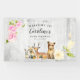 Banderole de bienvenue élégante au baby shower, ornée de fleurs d'aquarelle peintes à la main (magnolia et camélia) et d'animaux de la forêt (lapin, renard, cerf et ours). Il y a un arrière - plan de texture bois blanc. Design à thème bois doux pour une douche bébé fille. Customisez ce produit en ajoutant le nom de la maman à être et la date de l'événement.