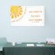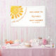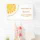 Cette bannière baby shower présente le texte "Un petit rayon de soleil est presque ici !" avec un soleil jaune aquarelle. Parfait pour un baby shower sans distinction de genre. Facile à personnaliser. Utilisez l'outil de conception pour modifier la taille, le style ou la couleur du texte. Parce que nous créons notre oeuvre, vous ne trouverez pas cette image exacte d'autres designers. Aquarelle originale © Michele Davies.