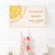 Cette bannière baby shower présente le texte "Un petit rayon de soleil est presque ici !" avec un soleil jaune aquarelle sur un arrière - plan crème. Parfait pour un baby shower sans distinction de genre. Facile à personnaliser. Utilisez l'outil de conception pour modifier la taille, le style ou la couleur du texte. Parce que nous créons notre oeuvre, vous ne trouverez pas cette image exacte d'autres designers. Aquarelle originale © Michele Davies.