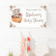 Cette bannière d'accueil baby shower présente un design de chute d'aquarelle fantaisiste avec un mignon ours en peluche assis sur une citrouille et des fleurs et feuillage bordeaux. Personnalisez-le avec votre texte. D'autres articles de baby shower correspondants sont également disponibles. Veuillez consulter la page de collection ou visiter notre magasin pour voir la gamme complète.