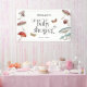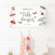 Banderole de bienvenue rustique et fantaisiste baby shower avec illustration de champignons et de papillons de nuit. Design neutre pour une douche d'automne.