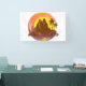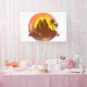 Banderoles Badge avec paysage volcanique tropical et palmiers