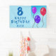 Bannière de la fête Anniversaire de enfant des Ballons Bleus mignons. Le design a 3 ballons avec des étoiles dans les couleurs rouge et violet sur un arrière - plan bleu. Customisez-le avec votre nom, âge et texte et faites votre propre bannière de fête d'anniversaire. Idéal pour la fête d'anniversaire d'un garçon ou d'une fille.