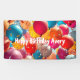 Bannière d'anniversaire pour garçons ou filles, enfants ou adultes. Ballons rouges, bleus, jaunes et oranges et graphismes confettis avec un endroit pour mettre votre message personnalisé. Il suffit d'aller dans la zone personnalisée et d'ajouter le nom, l'âge et le message de célébration.