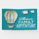 Admettons-le chaque jour est une aventure, alors pourquoi ne pas se réunir avec votre famille et avoir une aventure familiale ? L'aquarelle colorée est équipée d'une montgolfière prête pour une aventure familiale. Monogramme avec votre nom de famille. Affichez votre propre bannière de Réunion familiale au parc, à la plage ou au barbecue de l'arrière-cour.