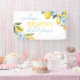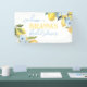 Accueillez vos invités avec cette magnifique bannière en vinyle étourdissante. Personnalisez avec le nom de votre invité d'honneur et le type d'événement. Fait partie de notre collection de douches de mariée "Main Squeeze", mais fonctionne également très bien pour un mariage au citron, une célébration d'anniversaire au citron ou une douche de bébé "Petit Citron" ! Comporte de beaux citrons jaunes à l'aquarelle et des fleurs bleues sur fond blanc.