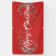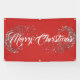 Cette bannière de vacances est présentée dans le style extérieur avec des grommets. Choisissez à l'intérieur ou à l'extérieur, avec ou sans grommets. Montré en rouge avec blanc "Joyeux Noël" script fantaisie avec deux tourbillons d'étoiles en argent à chaque extrémité. Customisez ou achetez comme prévu.