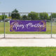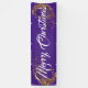 Cette bannière de vacances est présentée dans le style extérieur avec des grommets. Choisissez à l'intérieur ou à l'extérieur, avec ou sans grommets. Montré en violet avec blanc "Joyeux Noël" script fantaisie avec deux tourbillons d'étoiles à l'aspect or à chaque extrémité. Customisez ou achetez comme prévu.