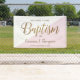 Personnalisez avec le nom complet de votre petite fille. Cette affiche élégante de la bannière d’accueil baptisée en plein air fait apparaître un script imprimé "baptême" d’or pour une touche d’élégance à ce design moderne. Le bleu peut être modifié à l'aide de l'outil customiser plus loin.