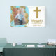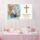 Cette serviette pour le premier anniversaire et le baptême sera parfaite pour la fête de votre petit garçon. Ce design présente une photo de votre enfant sur un fond aquarelle bleu avec des ballons dorés. De l'autre côté, il y a un texte doré avec une croix dorée et le nom de votre enfant. Créez un superbe arrière-plan photo !