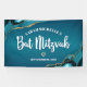 Soyez fiers, réjouissez-vous et mettez en valeur ce jalon de votre Bat Mitzvah préférée ! Accrochez cette bannière cool, unique, moderne et personnalisée pour ajouter à son jour spécial. Un script de calligraphie blanc, une typographie sans empattement blanche et gras, et une étoile de David en faux or sur un fond ombré bleu sarcelle turquoise profond accentué d'agate bleu turquoise avec des veines en faux or. Personnalisez le texte personnalisé avec le nom et la date de votre Bat Mitzvah ou un message personnalisé. Garantie de préserver les souvenirs chéris de son occasion spéciale ! Des invitations, des étiquettes d'adresse, des autocollants, des cartes de remerciement, des classeurs de souvenirs et d'autres friandises de Bat Mitzvah assortis et coordonnés sont également disponibles dans cette collection tendance et spéciale.