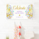 Soyez fiers, réjouissez-vous et mettez en valeur ce jalon de votre Bat Mitzvah préférée ! Accrochez cette bannière personnalisée, moderne et élégante pour ajouter à son jour spécial. Une écriture calligraphique dorée et scintillante, une typographie violette, et deux arbres graphiques abstraits en faux or avec des "feuilles" en forme d'étoiles de David violettes, turquoises, bleues et vertes scintillantes sur fond blanc. Personnalisez le texte personnalisé avec le nom et la date de votre Bat Mitzvah ou un message personnalisé. Garantit la préservation de souvenirs chers de son occasion spéciale ! Des invitations, des étiquettes d'adresse, des autocollants, des classeurs souvenirs et d'autres goodies de Bat Mitzvah assortis et coordonnés sont également disponibles dans cette collection tendance et spéciale.