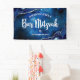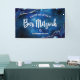 Soyez fier, réjouissez-vous et mettez en valeur ce jalon de votre Bar Mitzvah préféré ! Accrochez cette bannière cool, unique, moderne et personnalisée pour ajouter à son jour spécial. La typographie de script blanc et l'étoile de David se superposent sur un fond d'aquarelle de galaxie bleu foncé avec de l'agate bleu marine rehaussée de veines en faux argent. Personnalisez le texte personnalisé avec le nom et la date de votre Bar Mitzvah ou un message personnalisé. Garantit de préserver les souvenirs chéris de son occasion spéciale ! Des invitations, des étiquettes d'adresse, des autocollants, des classeurs de souvenirs et d'autres cadeaux de Bar Mitzvah assortis et coordonnés sont également disponibles dans cette collection tendance et spéciale.