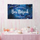 Soyez fier, réjouissez-vous et mettez en valeur ce jalon de votre Bar Mitzvah préféré ! Accrochez cette bannière cool, unique, moderne et personnalisée pour ajouter à son jour spécial. La typographie de script blanc et l'étoile de David se superposent sur un fond d'eau bleu profond de galaxie aquarelle avec de l'agate bleu marine accentué de veines de faux argent. Personnalisez le texte personnalisé avec le nom et la date de votre Bar Mitzvah ou un message personnalisé. Garantie de préserver les souvenirs chéris de son occasion spéciale ! Des invitations, des étiquettes d'adresse, des autocollants, des classeurs de souvenirs et d'autres goodies de Bar Mitzvah assortis et coordonnés sont également disponibles dans cette collection tendance et spéciale.