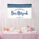 Soyez fier, réjouissez-vous et mettez en valeur ce jalon de votre Bar Mitzvah préféré ! Accrochez cette bannière cool, unique, moderne et personnalisée pour ajouter à son jour spécial. Une typographie de script bleu marine gras, une étoile de David argentée et un graphique inspiré du tallit rayé bleu marine et argenté sur un fond blanc simple. Personnalisez le texte personnalisé avec le nom et la date de votre Bar Mitzvah ou un message personnalisé. Garantit de préserver les précieux souvenirs de son occasion spéciale ! Des invitations, des étiquettes d'adresse, des autocollants, des classeurs de souvenirs et d'autres cadeaux de Bar Mitzvah assortis et coordonnés sont également disponibles dans cette collection tendance et spéciale.