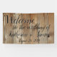 Bannière faite sur commande chic d'accueil de mariage de pays. Texte préétabli sur l'arrière - plan de barrière de cèdre. Ajoutez les noms et la date.