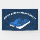 Créez une bannière personnalisée pour les fêtes d'anniversaire à thème de bateau à pédales et d'autres événements spéciaux. Cette bannière de fête présente l'illustration d'un bateau à pédales en bleu et blanc contre un arrière - plan bleu marine. Il est prêt à être personnalisé avec votre message en caractères blancs gras.