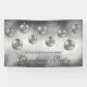 L'illustration originale de Destei de baubles de Noël gris argenté qui portent un motif de flocon de neige. L'arrière - plan est un beau bokeh gris. Il y a aussi deux zones de texte personnalisables.