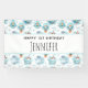Une bannière d'anniversaire avec un motif fantaisiste avec de mignonnes baleines souriantes nageant joyeusement dans la mer.