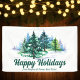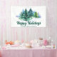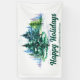 Cette belle bannière de fête de fin d'année d'entreprise personnalisée présente de magnifiques sapins de Noël verts dans un paysage hivernal au-dessus du nom de votre entreprise personnalisé et Joyeuses Fêtes. Décoration de vacances personnalisée pour une entreprise ou une famille.
