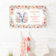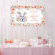 C'est une fille ! Un petit éléphant doux entouré de fleurs de corail et rose aquarelle illustration bannière de baby shower personnalisée pour une petite fille.
