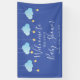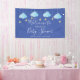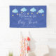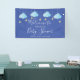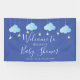 Caractéristiques de mignons nuages bleus et d'étoiles dorées sur ficelles, sur fond bleu, cette bannière de bienvenue pour fête prénatale de bébé garçon, paillettes ou fête de couple est parfaite pour un événement spécial. Conçu par Thisisnotme©