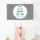 C'est une bannière de fête d'anniversaire de la Voiture de Course Bleue à quatre vitesses!