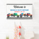 BESOIN DE QUATRE CAMIONS DE MONSTRE À VITESSE BANNER D'ANNIVERSAIRE. CAMIONS COLORÉS AVEC NOIR ET BLANC SUPER À DAMIERS MOTIF RETRO STYLE ÉDITABLE ANNIVERSAIRE DE ENFANT VINYL BANNER