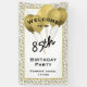 Bienvenue à ma 85e fête d'anniversaire. Il s'agit d'une grande bannière dorée et blanche avec des modèles de texte pour vous permettre de changer facilement le texte en votre propre événement, mots, date, nom ou monogramme. Vous pouvez personnaliser n'importe quel texte à l'aide des modèles de texte fournis. Il y a des ballons d'or dans l'arrière - plan et un nombre aléatoire motif du numéro 85 autour du cadre. Ce thème cool peut également être utilisé pour tous les événements ou occasions où vous fêtez le numéro 85; il suffit de changer le texte pour correspondre à votre célébration.