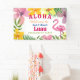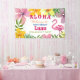 Accueillez vos invités à votre célébration tropicale avec cette bannière de fête de fiançailles luau vibrante. Avec des fleurs d'hibiscus aquarelles, des feuilles de palmier luxuriantes et un flamant rose élégant, ce design crée l'ambiance parfaite de l'île. Personnalisez avec vos noms et les détails de l'événement. Idéal pour les fêtes de plage, les luaus de jardin ou les événements de fiançailles estivaux.