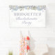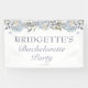 Accueillez vos amis et votre famille à votre fête d'enterrement de vie de jeune fille avec cette bannière de bienvenue florale bleue. Cette bannière de bienvenue pour fête d'enterrement de vie de jeune fille présente de belles fleurs d'hortensia bleues douces et des feuilles botaniques comme accents. Personnalisez cette bannière de bienvenue pour la fête d'enterrement de vie de jeune fille avec votre nom, votre occasion et la date de votre événement.