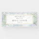 Avec des feuilles de verdure délicates peintes à l'aquarelle sur un fond de flocons de neige hivernaux, cette carte de bienvenue chic et botanique pour la soirée de mariage peut être personnalisée avec votre message de remerciement spécial. Conçue par Thisisnotme©