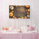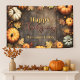 Une bannière de Thanksgiving personnalisable époustouflante avec un fond en bois rustique. Ce design est magnifiquement accentué par un amas abondant de citrouilles et de feuilles d'automne riches dans des couleurs d'automne vibrantes. Le texte "Joyeux Thanksgiving", ainsi que le nom de la famille, sont élégamment rendus dans une écriture dorée et fluide. N'oubliez pas que tout le texte est entièrement personnalisable pour s'adapter parfaitement à votre célébration.
