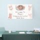 Cette bannière de bienvenue charmante donne le ton pour un enterrement de vie de jeune fille Lingerie & Lattes, avec de la lingerie de mariage élégante, un latte cosy et des fleurs bohèmes dans un design stylé.