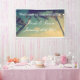 Bienvenue à notre destination plage mariage personnalisé bannière. Modèle élégant avec typographie classe et photo de palmier courbé. Beau modèle pour les couples qui prévoient de se marier en été ou dans des endroits côtiers exotiques. Partie de collection abordable ensemble avec décorations et papeterie assorties. Personnalisez avec les noms de la mariée et du marié. Palette de couleurs rétro bleu et vert. Disponible en grandes et petites tailles.