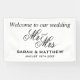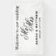 Bienvenue à notre mariage élégant M. et Mme texte de script Banner. Modèle design noir et blanc classique. Décorations chic et panneaux pour diriger les clients. Disponible en intérieur et en extérieur. Disponible en petites et grandes tailles.