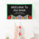 Cette bannière Bienvenue à la deuxième classe offre un design audacieux et coloré. La bannière présente des pommes rouges et des crayons colorés ainsi que du texte personnalisé pour n'importe quel grade.